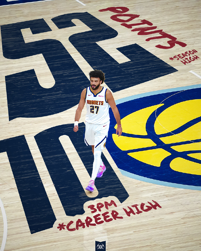 穆雷52+10三分生涯新高!掘金双杀步行者 约基奇24+8+13