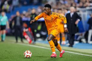 体育资讯4月17日讯 欧冠1/4决赛次回合比赛,维尼修斯破门,皇马主场1-1阿森纳,两回合总比分1-4落后。