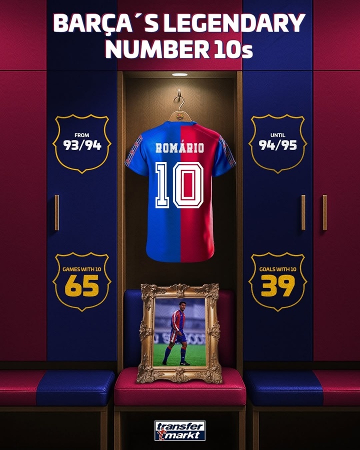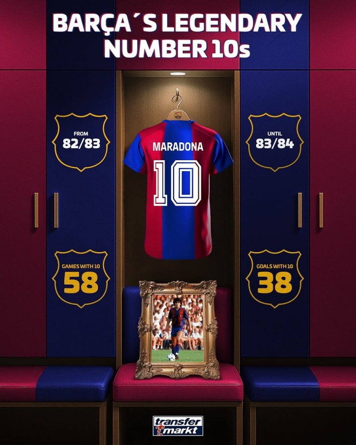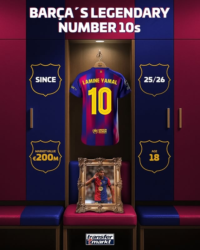 07月17日讯 巴萨官方宣布,18岁亚马尔接过巴萨10号球衣。德转盘点了巴萨历任10号的数据。